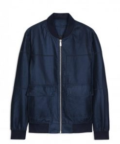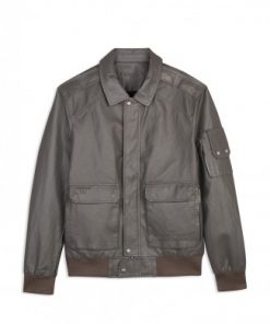 GREY LEATHER JACKET WITH 2 BOX POCKETS WITH LEFT CHEST PRINTING