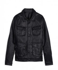 BLACK LEATHER JACKET WITH 4 BOX POCKETS