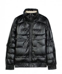 GLOSSY BLACK PUPPY JACKET WITH 3P COLLAR AND ZIPPER COVER