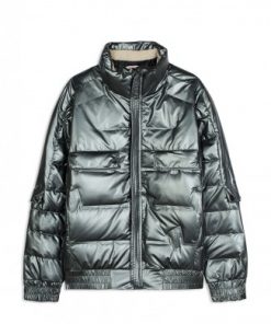 GREY SHINE JACKET WITH 3P COLLAR AND ZIPPER COVER