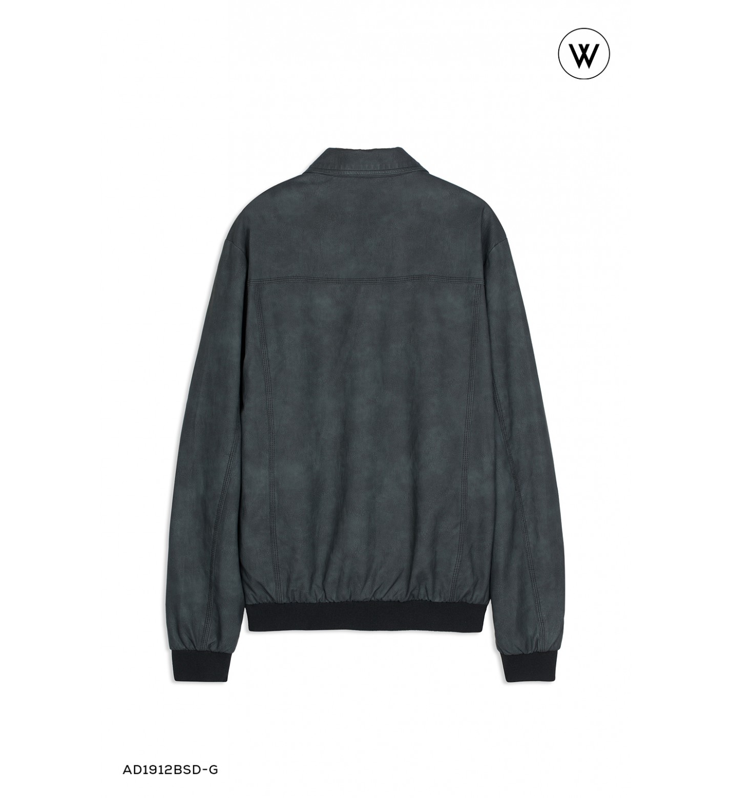 GREY LEATHER JACKET WITH 2 BOX POCKETS WITH LEFT CHEST PRINTING